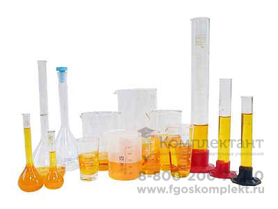 Комплект мерной посуды предназначен для проведения демонстрационных опытов, связанных с измерением объемов жидкостей и приготовлением растворов.