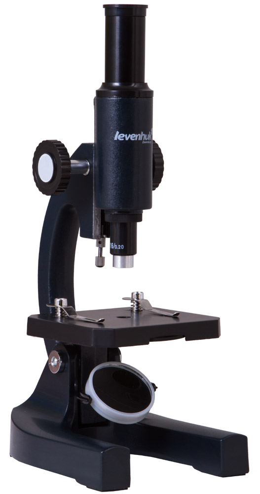 Максимальное увеличение, которое обеспечивает этот микроскоп, составляет 200х – этого мало для серьезных исследований, но вполне достаточно для того, чтобы сделать первые шаги в микромир. Окуляр и объектив микроскопа расположены на одной линии, но есть возможность наклонить оптическую трубку микроскопа вместе с предметным столиком для удобства наблюдений (стоит учесть что при работе с жидкими микропрепаратами возможно их стекание).