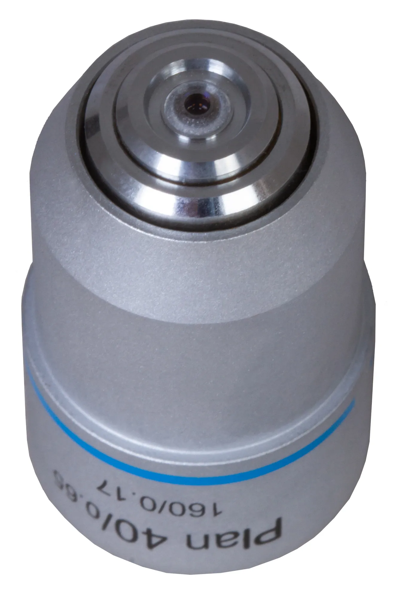 Перед вами планахроматический объектив Levenhuk MED 40x. Он дает 40-кратное увеличение и позволяет работать со сложными микробиологическими образцами. Рабочее расстояние небольшое, поэтому передняя линза защищена специальной пружинящей оправой. Оптика сделана из стекла и помещена в металлический корпус.