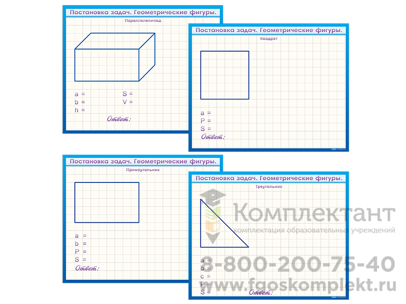 Фрагмент (демонстрационный) маркерный, двухсторонний "Постановка задач. Геометрические фигуры