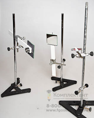 Для проведения демонстраций необходимы 3 штатива с разными муфтами (для вертикального и горизонтального крепления лапок) и экран (в качестве экрана может быть использована светлая стена кабинета).