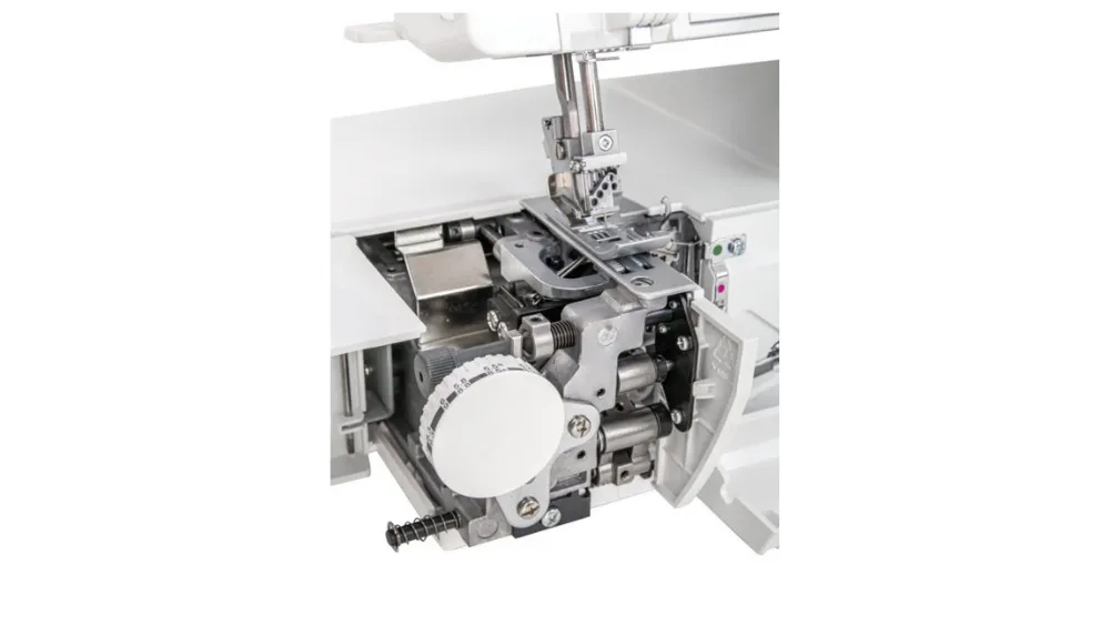Necchi 5555 имеет в своём наборе 20 видов встроенных операций и имеет дифференциальное продвижение материала, что даёт большое преимущество при работе. Регулировка натяжения нитей осуществляется вручную. Наличие встроенного заправщика нижнего петлителя поможет сэкономить время на заправку нити перед подготовкой устройства к работе. Для более быстрого обучения основным функциям и настройкам оборудования в комплекте прилагается подробная инструкция по эксплуатации. Благодаря техническому оснащению скорость шитья достигает 1300 стежков в минуту, сохраняя при этому неизменно высокую точность и качество швов. Максимальная высота подъёма лапки составляет 5 мм.