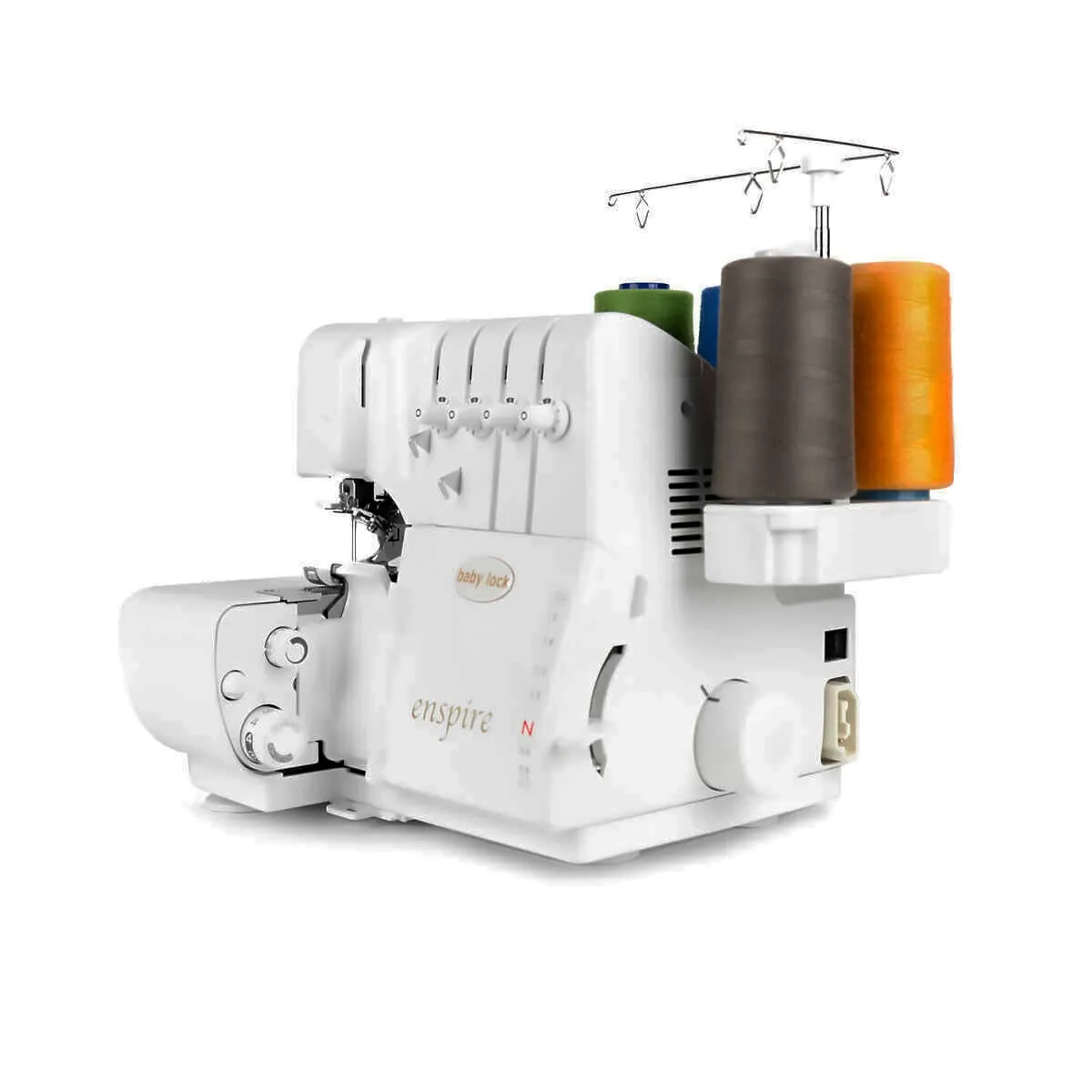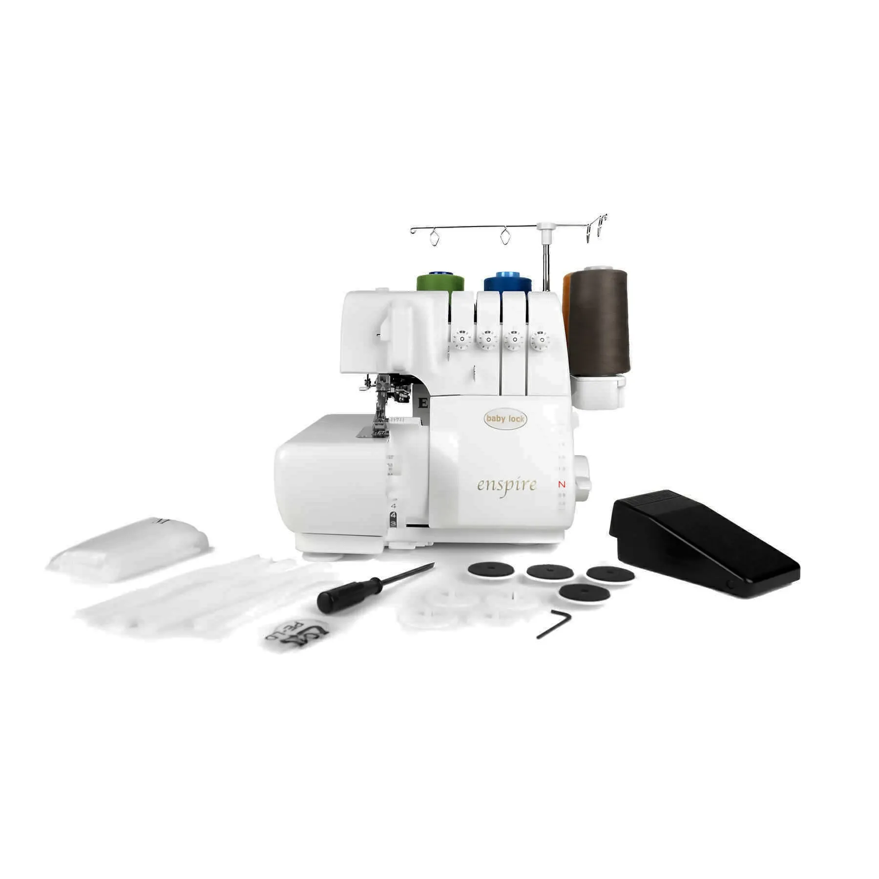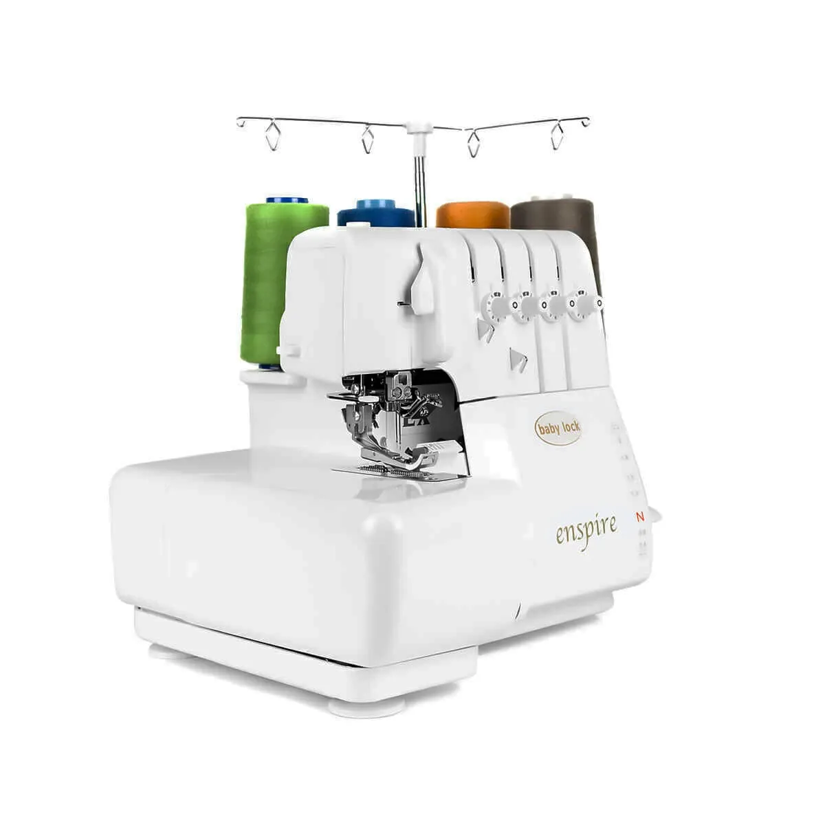 Оверлок Enspire от японской компании Babylock - это результат усилий по усовершенствованию и обновлению популярного оверлока Eclipse DX. Оверлок Enspire сохранил в себе все преимущества прежней модели, предлагая новые функциональные возможности. Больше нет необходимости следовать за указателями для заправки каждой из ниток, как в других оверлоках! Просто вставьте нить желаемого цвета в порт для заправки петлителя и нажмите на рычажок - мощный поток воздуха проведет нить до кончика петлителя. Заправка нитей в иглы также не вызовет никаких затруднений - благодаря использованию встроенного нитевдевателя.
