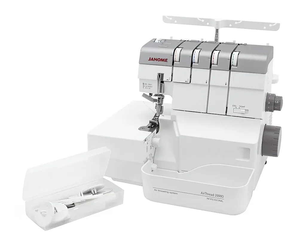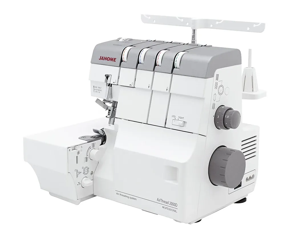 Компания Janome представляет своим клиентами очередную новинку - 4-x (3, 2-x) - ниточный оверлок AirThread 2000D Professional. Его главная особенность - уникальная система воздушной заправки петлителей. Вам всего лишь необходимо вставить нить в отверстие, которое соответствует нижнему или верхнему петлителю. И, после нажатия специального рычага, воздушный поток легко и быстро направляет нить по трубкам прямо в петлитель. Модель так же оснащена встроенным регулируемым нитевдевателем, который помогает без особых усилий заправить как левую, так и правую иглу. Эти процессы заметно сокращают время и упрощают процесс подготовки к шитью! При помощи Оверлока Janome AirThread 2000D Вы сможете выполнить все необходимые виды швов: обметочные, ролевые, Flatlock и другие. Регулируемая дифференциальная подача ткани обеспечивает идеальное продвижение любых материалов без растяжения и стягивания. Диапазон значений: 0,5 - 2. Помимо этого, Оверлок оснащен регулятором давления лапки на ткань, встроенным конвертером для 2-х ниточного шва. Для работы с объемными изделиями Оверлок имеет дополнительный подъем прижимной лапки. А для поддержания чистоты и порядка на Вашем рабочем месте - съемный мусоросборник для обрезков ткани.