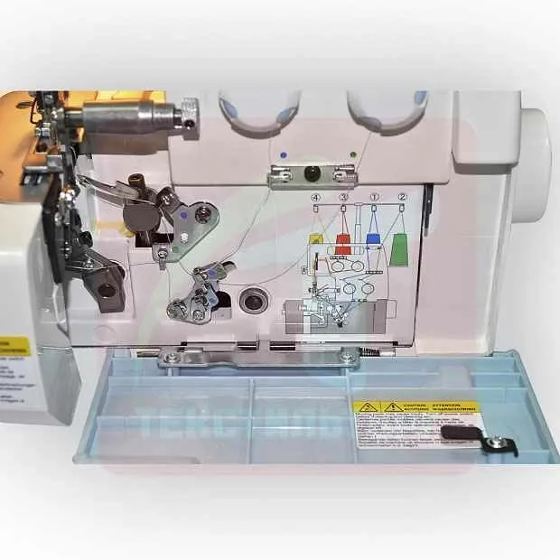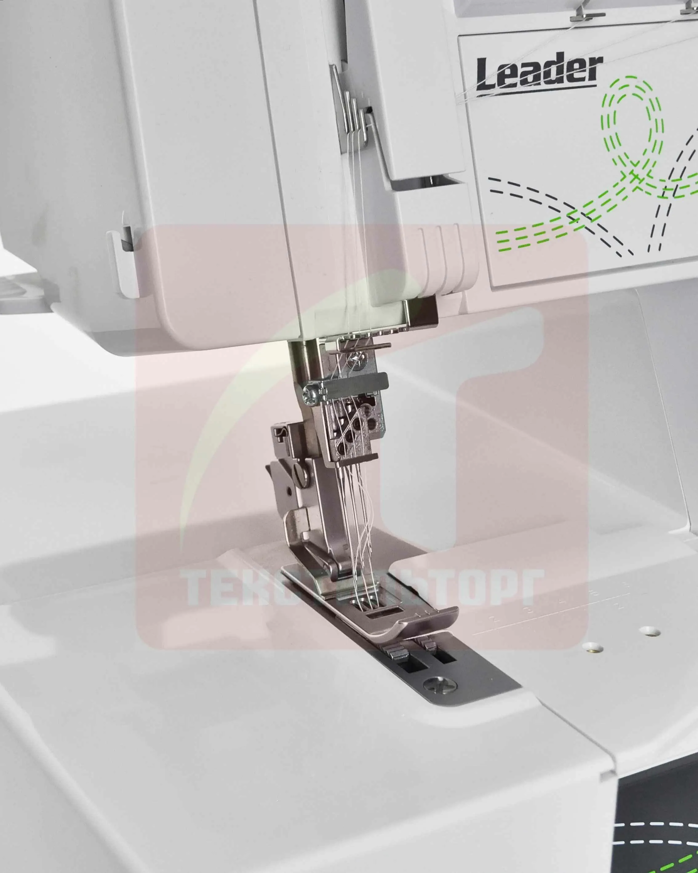 Leader VS 400D Cover Stitch оснащена дифференциальной подачей рейки, а откидная крышка петлителя обеспечивает лёгкую заправку нитей. Эта модель имеет привлекательный дизайн и имеет большую рабочую площадь. Меняя подачу давления прижимной лапки, начинающая швея с лёгкостью будет работать с различными видами тканей.
