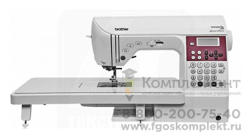 Innov-is 550 - Швейная машина Brother INNOV-IS 550 SE предназначена для выполнения самых сложных работ по квилтингу. Реализовать задуманное и получить идеальную строчку на этой машине очень просто: для этого предусмотрены функции боковой подачи материала (в стандартной комплектации) и системы автоматческой регулировки натяжения нити. LCD-дисплей Жидкокристаллический экран с подсветкой поможет разобраться со всеми настройками встроенных программ. Вы увидите, как меняется длина стежка и ширина строчки, а также не ошибётесь в выборе лапки. Центральная панель управления Удобная центральная панель управления значительно облегчает шитьё. Переключатели и сенсорные панели позволяют выбирать параметры строчки одним касанием. Удобный приставной столик В комплект поставки входит широкий столик, который можно приставить к рабочей поверхности. Шить одеяла, простыни или шторы будет намного проще 7-сегментная рейка-транспортер На модели установлена 7-сегментая рейка-транспортер — удобная и надежная, проверенная не одной моделью! Дополнительные зубцы рейки равномерно подадут ткань и обеспечат высокое качество строчки. Благодаря этому Вы получите аккуратные стежки на ткани различной плотности (батист, хлопок, атлас, джинса, пальтовые ткани и т. д., а также при их сочетании в одном проекте). Безграничные возможности для квилтинга Швейная машина Brother INNOV-IS 550 SE ориентирована на тех, кто планирует заниматься таким направлением, как лоскутное шитьё (квилтинг, пэчворк). Помимо того, что машины имеют увеличенную рабочую поверхность, в комплекте к машинам Вы найдете широкий стол-приставку, коленоподъёмник, а при желании, сможете приобрести дополнительные аксессуары, облегчающие выполнение многих задач: верхний транспортёр, боковой нож, лапка для стежки, лапка для квилтинга 1/4 и т. д Широкий выбор основных и декоративных строчек Модель Innov-is 550 выполняет различные строчки и несколько видов шрифтов: - 138 видов строчки; - 10 видов петель; - 3 встроенных шрифта; Основным преимуществом модели Brother INNOV-IS 550 SE является расширенная возможность редактирования строчек. Используя буквенные символы можно выстрачивать надписи, логотипы и монограммы. Уникальная функция "Мои строчки" позволит с помощью ЖК-дисплея создавать собственные строчки и заносить их в память машины для повторного использования. Любители квилтинга и декоративной отделки изделий полюбят эту возможность. Дополнительные удобства - Боковая подача материала. Транспортёр даёт возможность выполнять прямую строчку и зигзаг дополнительно в двух направлениях: вправо или влево. Эта функция пригодится при обработке узких круговых деталей, которые нельзя поворачивать. - Заправка верхней нити. Машина оснащена нитевдевателем, который автоматически заправит верхнюю нить в любую иглу. - Рычаг транспортёра. Чтобы свободно двигать ткань (например, во время стёжки), используйте рычаг рейки-транспортёра. - Система быстрой намотки шпульки FAST. С помощью этой системы намотка шпулек выполняется легко и быстро. Достаточно просто обернуть нить вокруг шпульки по направляющей и нажать кнопку «Старт». - Подсветка рабочей области. Для удобства работы рабочая область освещается мягким светом жидкокристаллического диода. Он потребляет намного меньше энергии, чем обычная лампа, и не потребует замены в течение всего срока служб
