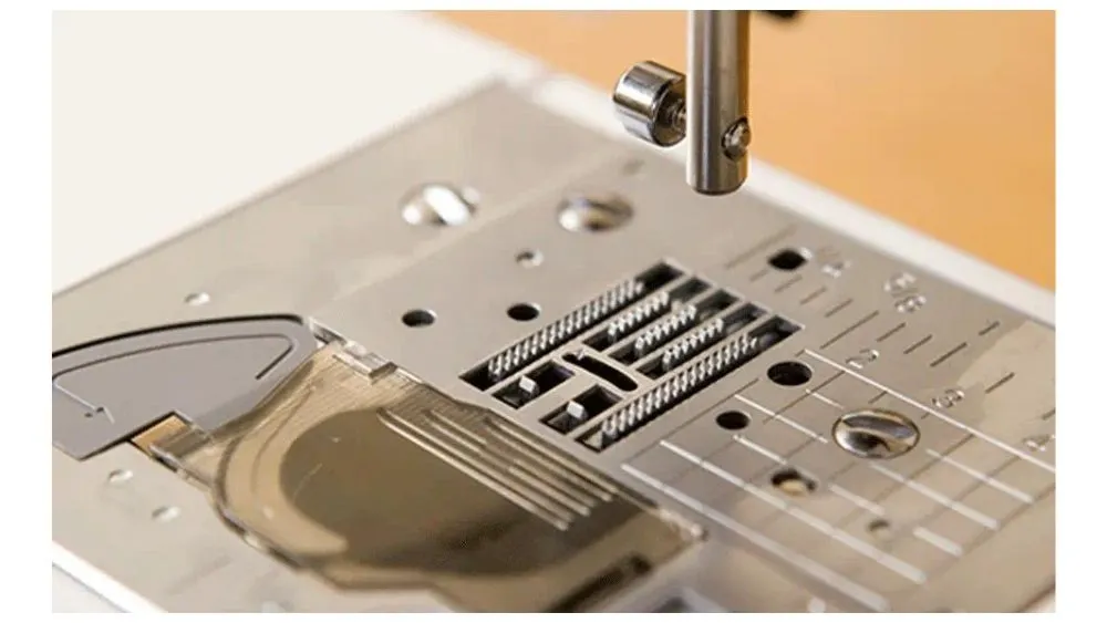 Рейка-транспортер В машинах этой серии используется 7-сегментая рейка-транспортер — удобная и надежная, проверенная не одной моделью! Дополнительные зубцы рейки равномерно подадут ткань и обеспечат высокое качество строчки. Благодаря этому вы получите аккуратные стежки на ткани различной плотности (батист, хлопок, атлас, джинса, пальтовые ткани и т.д., а также при их сочетании в одном проекте). Для тех, кто любит лоскутное шитье, рейку можно убрать и стегать или вышивать в свободно-ходовом режиме, используя лапку для стежки (приобретается отдельно). | |