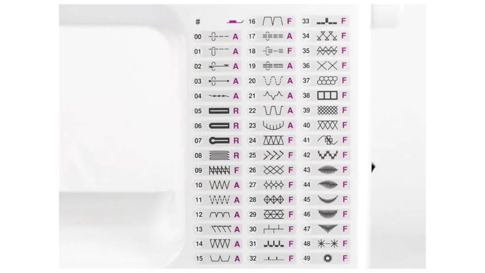 Janome 3700 предлагает на Ваш выбор 50 различных операций, которые без труда переключаются с помощью кнопок меню, расположенных на передней части корпуса рядом с монохромным дисплеем, отображающим заданные режимы шитья. Выполнение петли осуществляется в автоматическом режиме. Среди строчек есть множество рабочих и декоративных видов, которые помогут преобразить Ваши вещи.