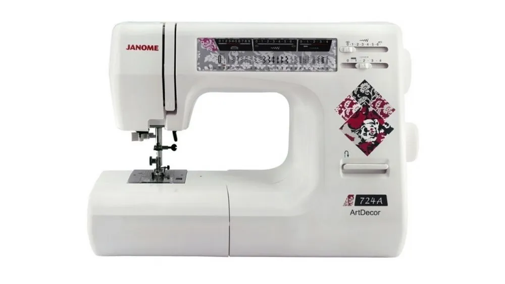 Janome ArtDecor 724A достаточно тяжёлая, очень устойчивая швейная машинка. Она не вибрирует и не «скачет» по столу во время работы на высокой скорости.