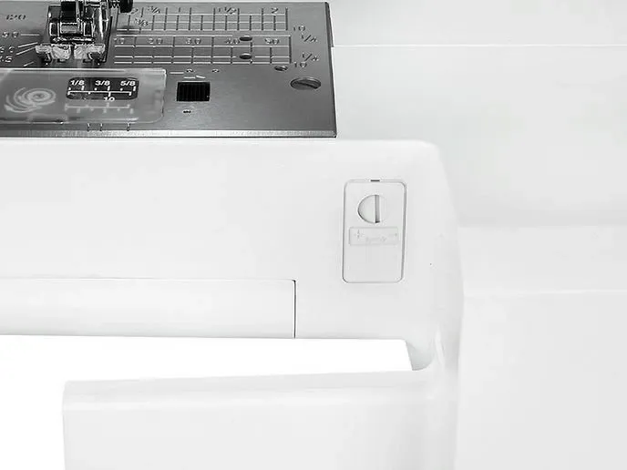 Удобное управление Выбор швейных операций и настройки параметров строчки происходят с помощью хромированного джойстика. ЖК-дисплей отображает номер выбранной операции, параметры длины и ширины стежка, а также обозначение рекомендуемой лапки. |
