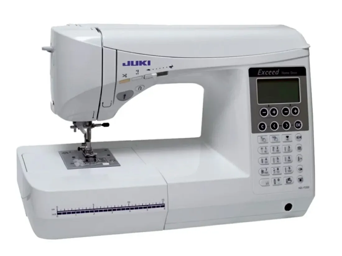 Швейная машина Juki HZL F-300 – универсальная компьютеризированная модель высокого класса, которая идеальнейшим образом подойдёт для выполнения несложных швейных операций, а также для произведения сложных стёганых программ. Данная модификация способна осуществлять 106 разнообразных операций (вышивка, рабочие, потайные, оверлочные, пэчворкские, декоративные, квилтинговые, трикотажные строчки, аппликации, штопка, художественная, монограммная отделка, 16 видов петель-автомат и т. д.).