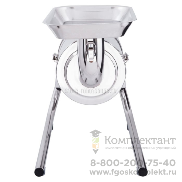 Комплектация включает цилиндрическое сито из нержавеющей стали с отверстиями Ø1 мм, куда попадают фрукты и овощи для протирки. Лопасти протирочной машины веращаются со скоростью 1500 об/мин, для получения сока и мякоти. Эргономика аппарата позволяет использовать емкости для готовой продукции больших размеров.