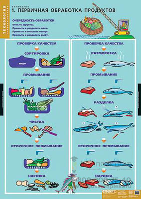 Первичная обработка продуктов. Форма нарезки продуктов. Приемы тепловой обработки продуктов. Соотношение меры и массы некоторых продуктов. Схема приготовления мясного бульона. Схема приготовления заправочного супа. Схема приготовления мясных котлет. Схема приготовления отварной и жареной рыбы. Схема приготовления сырников. Схема приготовления омлета. Схема приготовления каши. Схема приготовления дрожжевого теста. Схема приготовления песочного теста. Схема приготовления теста для блинов, блинчиков и оладий. Схема приготовления винегрета. Организация рабочего места и правила технической безопасности. Хранение продуктов. Витамины, жиры, белки, углеводы, минеральные вещества. Столовая посуда. Правила поведения за столом.