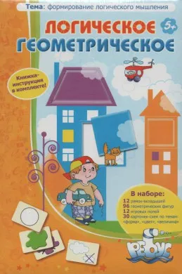 В игре: 12 рамок-вкладышей, 96 геометрических фигур, 12 игровых полей, 30 карточек-схем, брошюра с заданиями и правилами.