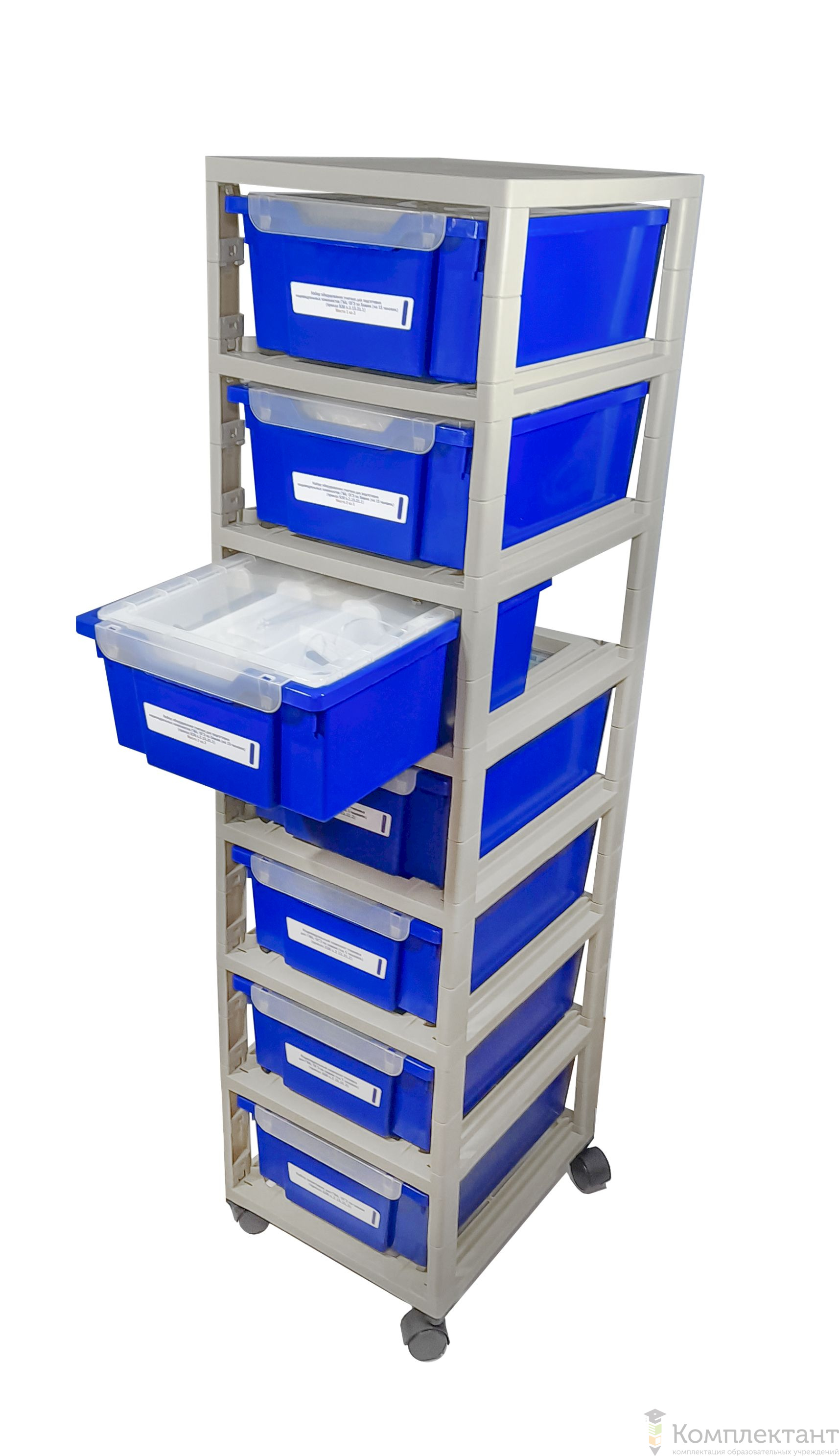 Комплект на 5 человек укомплектован в пластиковую систему хранения с прозрачной пластиковой крышкой на защелках для обеспечения наблюдения за содержимым.