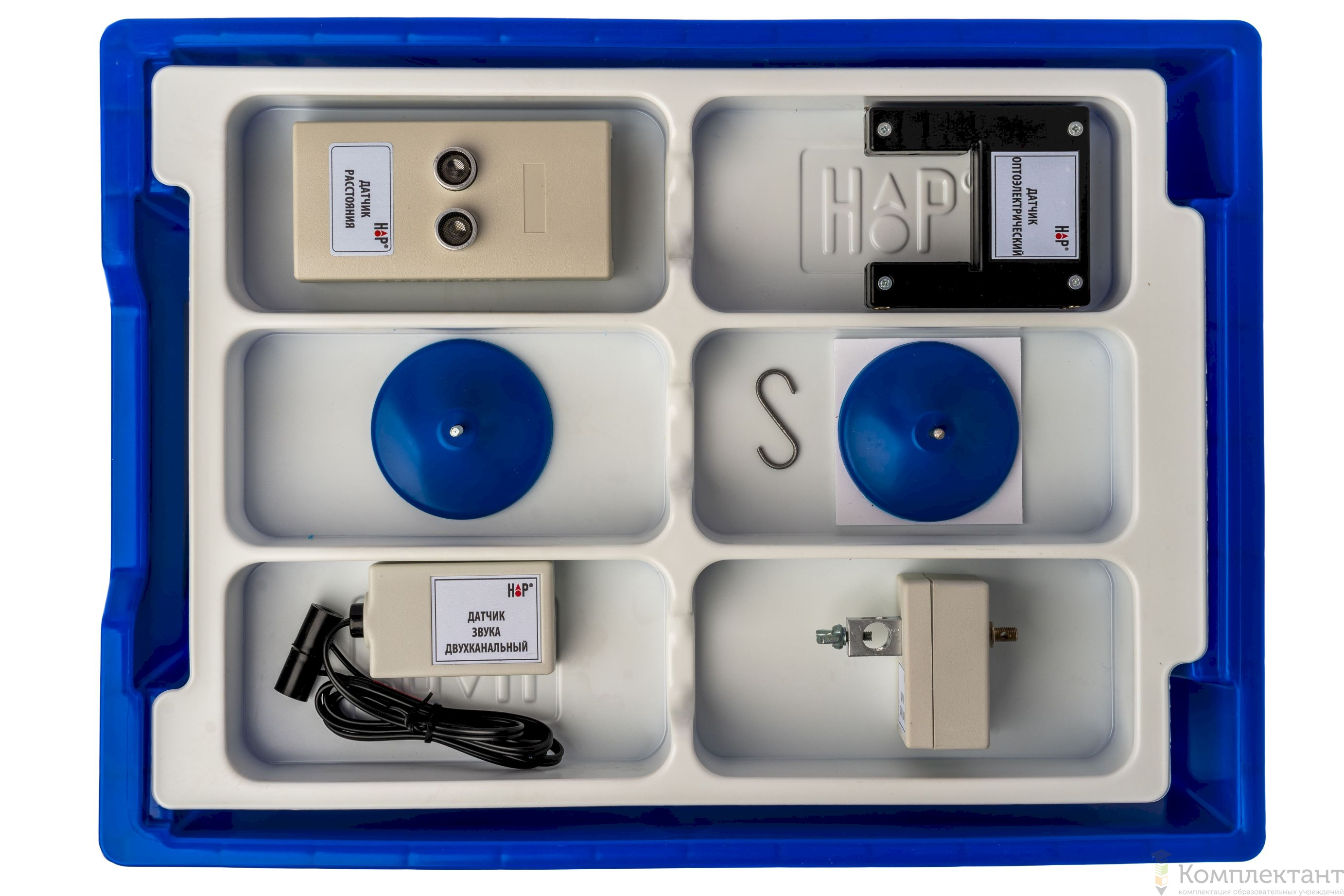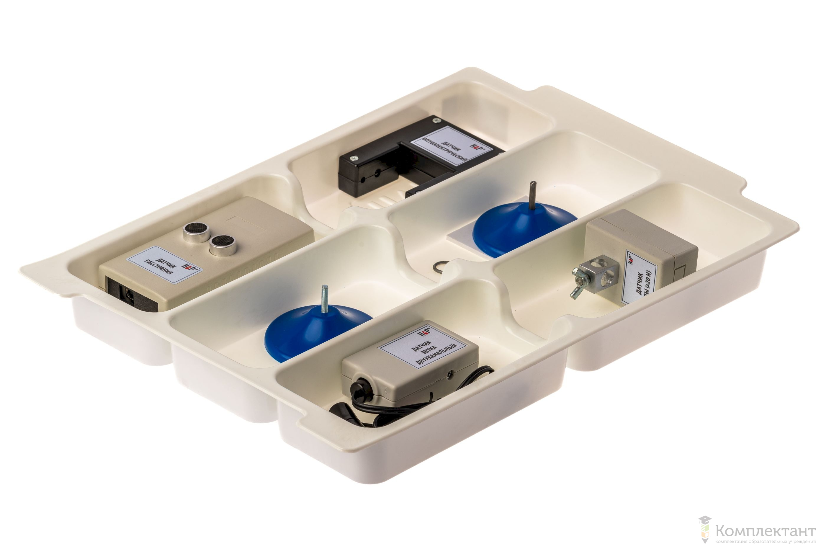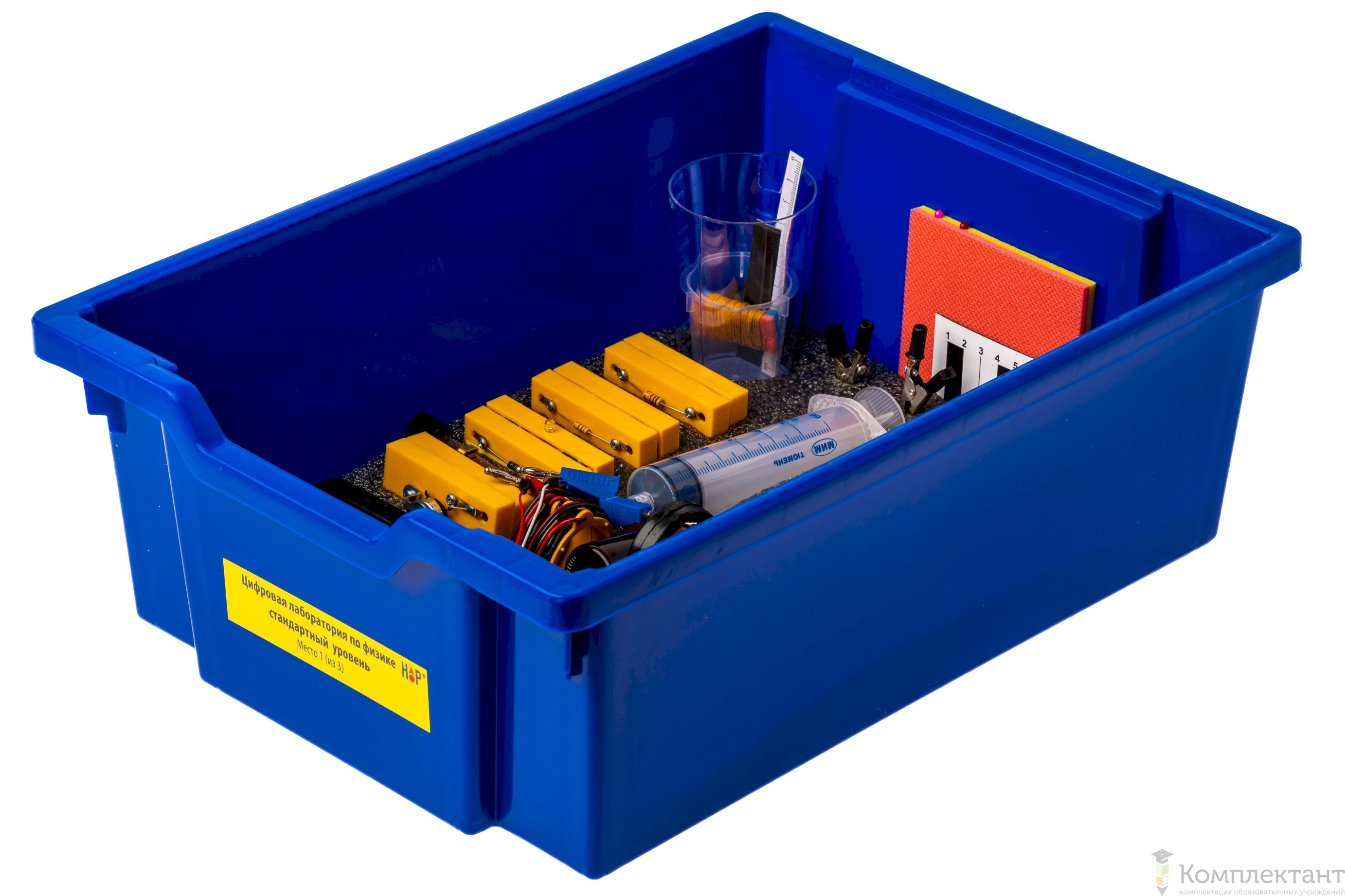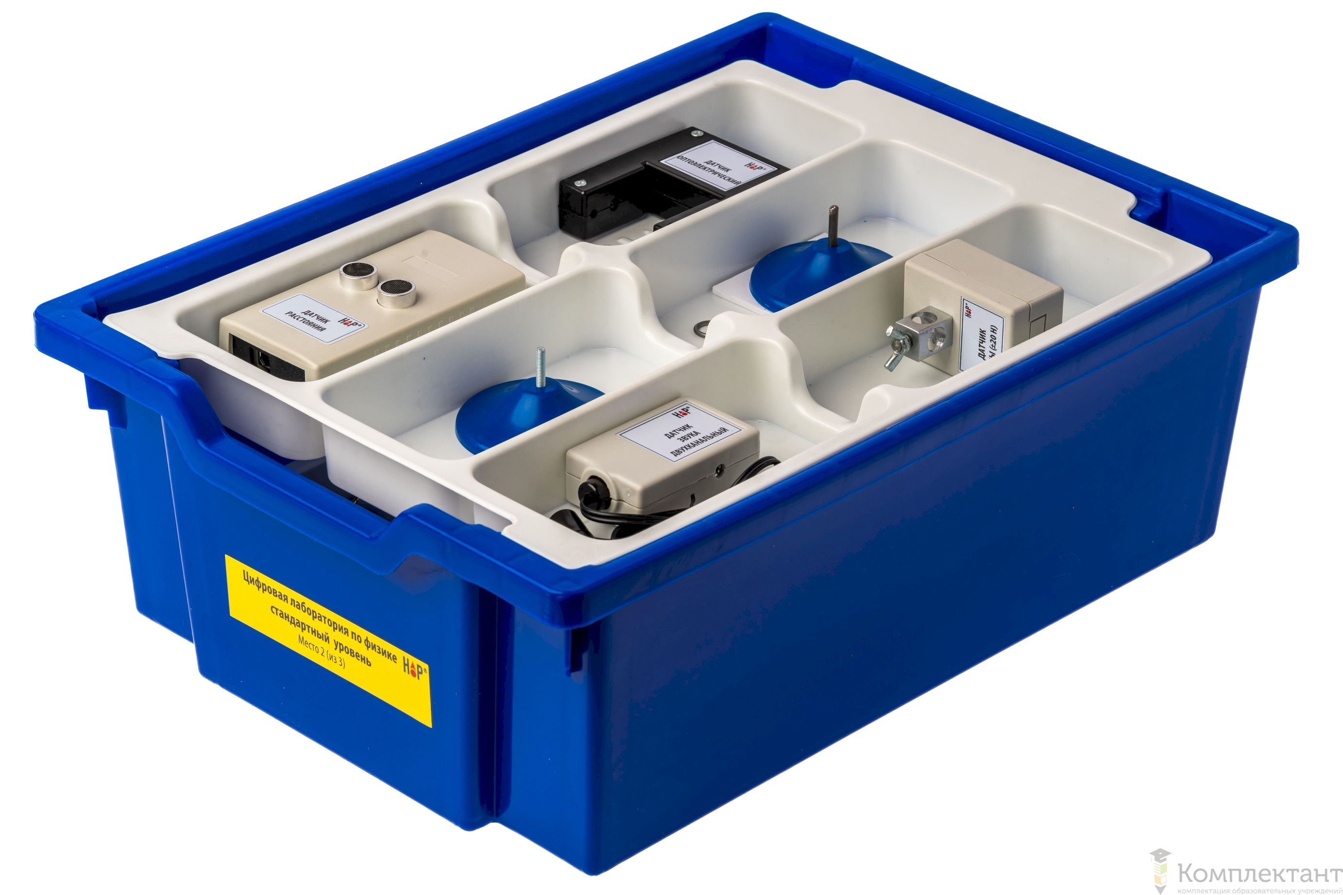 Все оборудование цифровой лаборатории (кроме скамьи лабораторной) укомплектовано в пластиковые системы хранения, которые закрываются прозрачной пластиковой крышкой на защелках для обеспечения наблюдения за содержимым. Комплект оборудования и датчики в системах хранения располагаются на ложементах в индивидуальных ячейках.