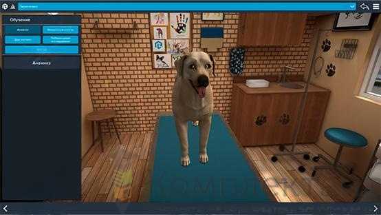 Виртуальный учебный комплекс предназначен для подробного изучения анатомии собаки с помощью трёхмерной графики и анимации, а также комплектов виртуальной реальности.